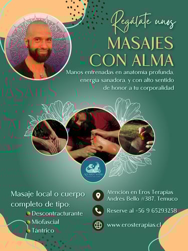 2025 y hasta nuevo aviso, mis atenciones en masoterapia sólo son realizadas a través de la agenda de Eros Terapias, ubicado en pleno centro de Temuco, Chile, una cálida y cómoda sala para ofrecerte mis diferentes masajes: